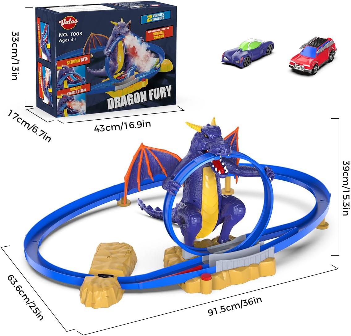 VATOS Dragon Slot Track Cars Set Toys - Racing Car Toy with Light & Spray, 4-7 Years Old Boy Girls Toys, Activity Indoor Kids Track Race Car Gifts