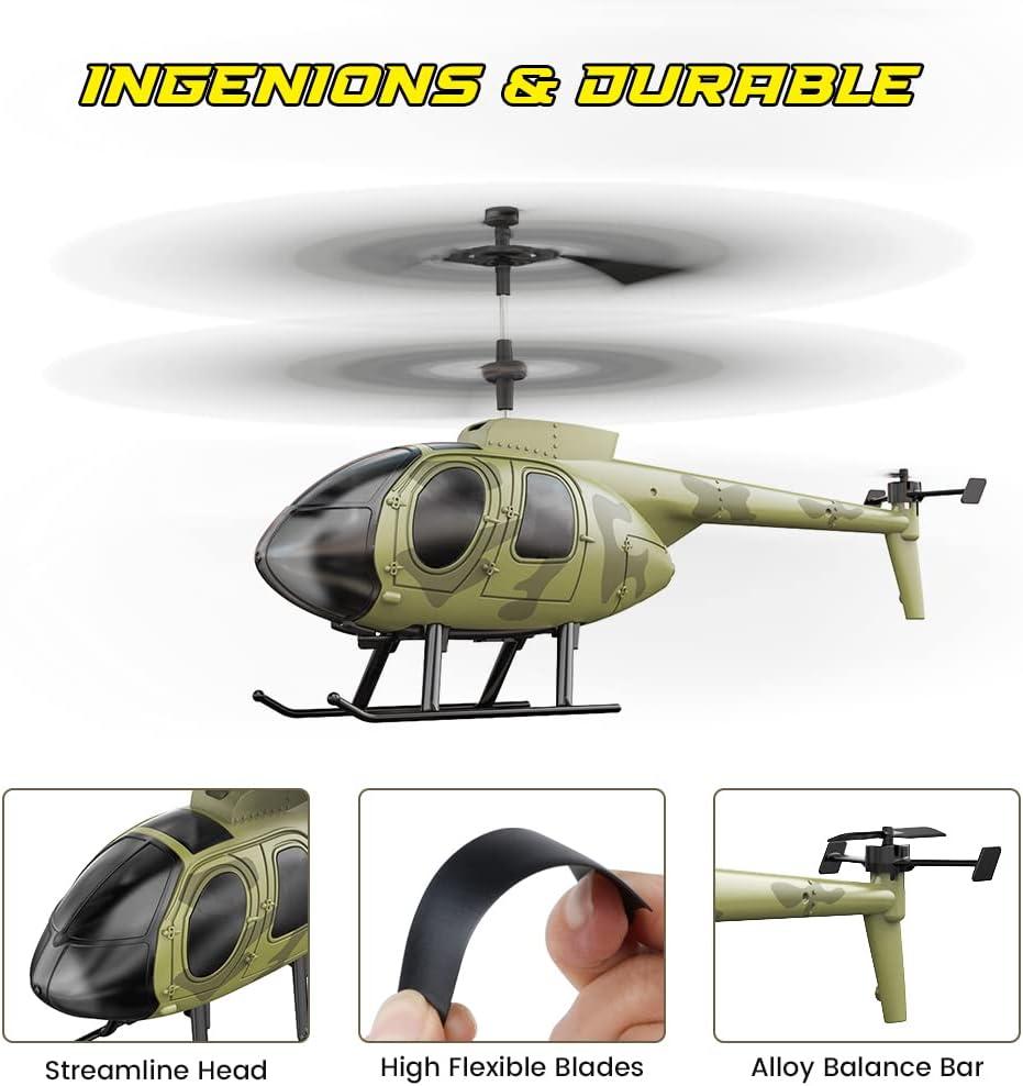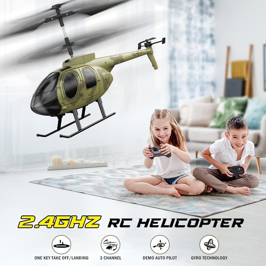 VATOS Remote Control Helicopter for Kids, Camouflage RC Helicopter, 2.4GHz Radio Controlled Airplane with Gyro 3 Channel Indoor Toy, One-Key Take-Off, Gift for Boys Adults