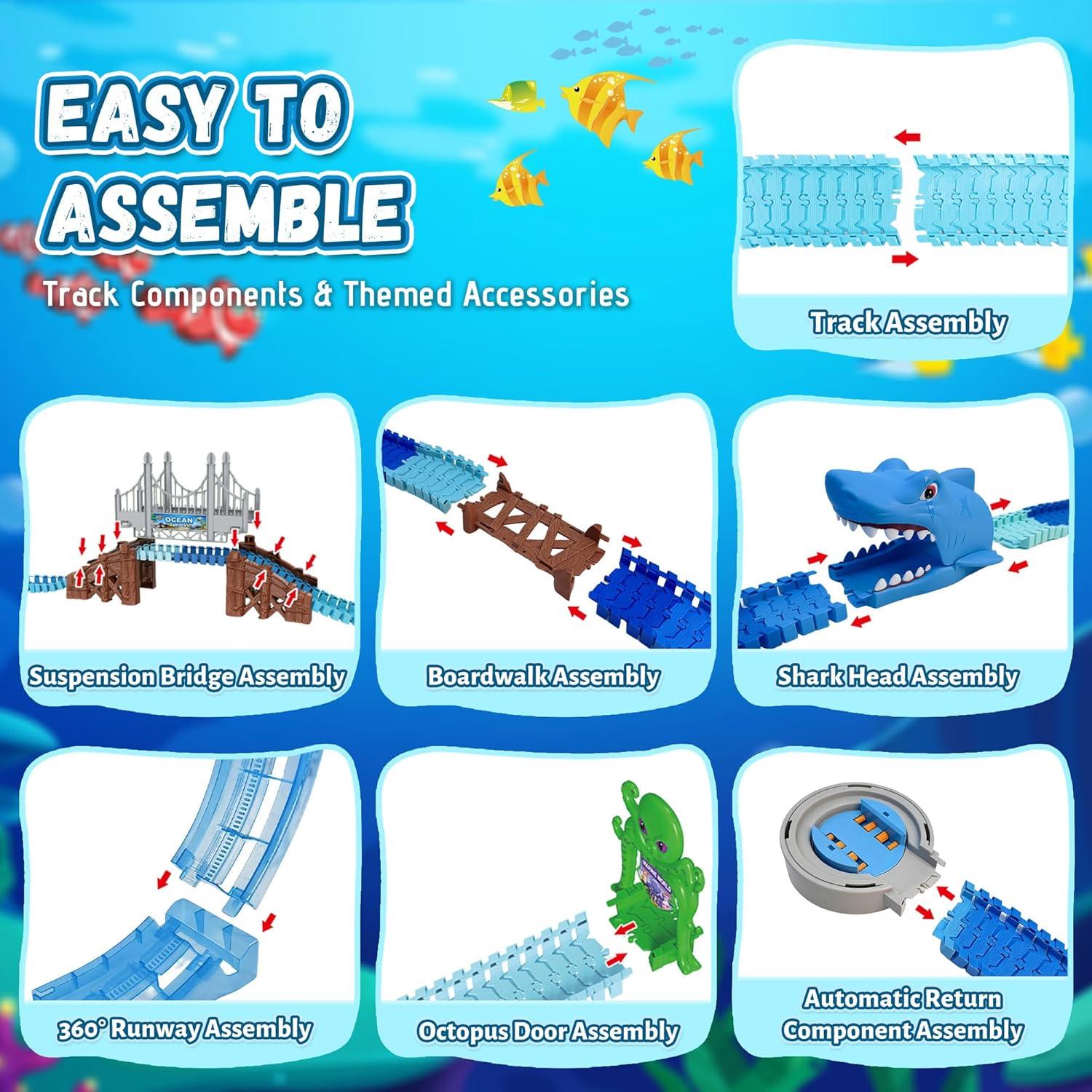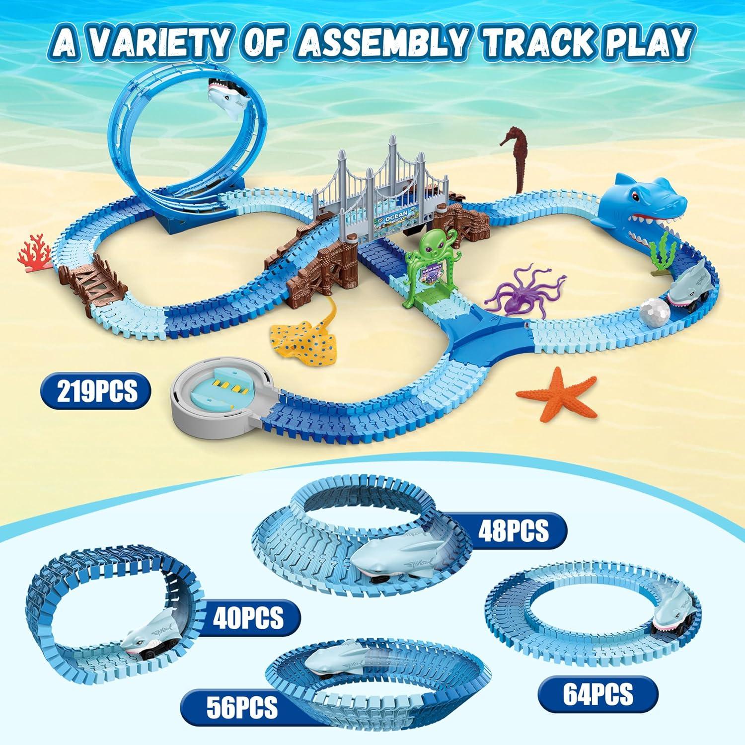 EASY TO ASSEMBLE & STORE – Design Your Unique Undersea Track! The modular track pieces are flexible, allowing kids to easily create new layouts based on their own ideas. This offers varied play options and endless fun. With limitless possibilities, this toy helps stimulate your child's imagination and creativity.