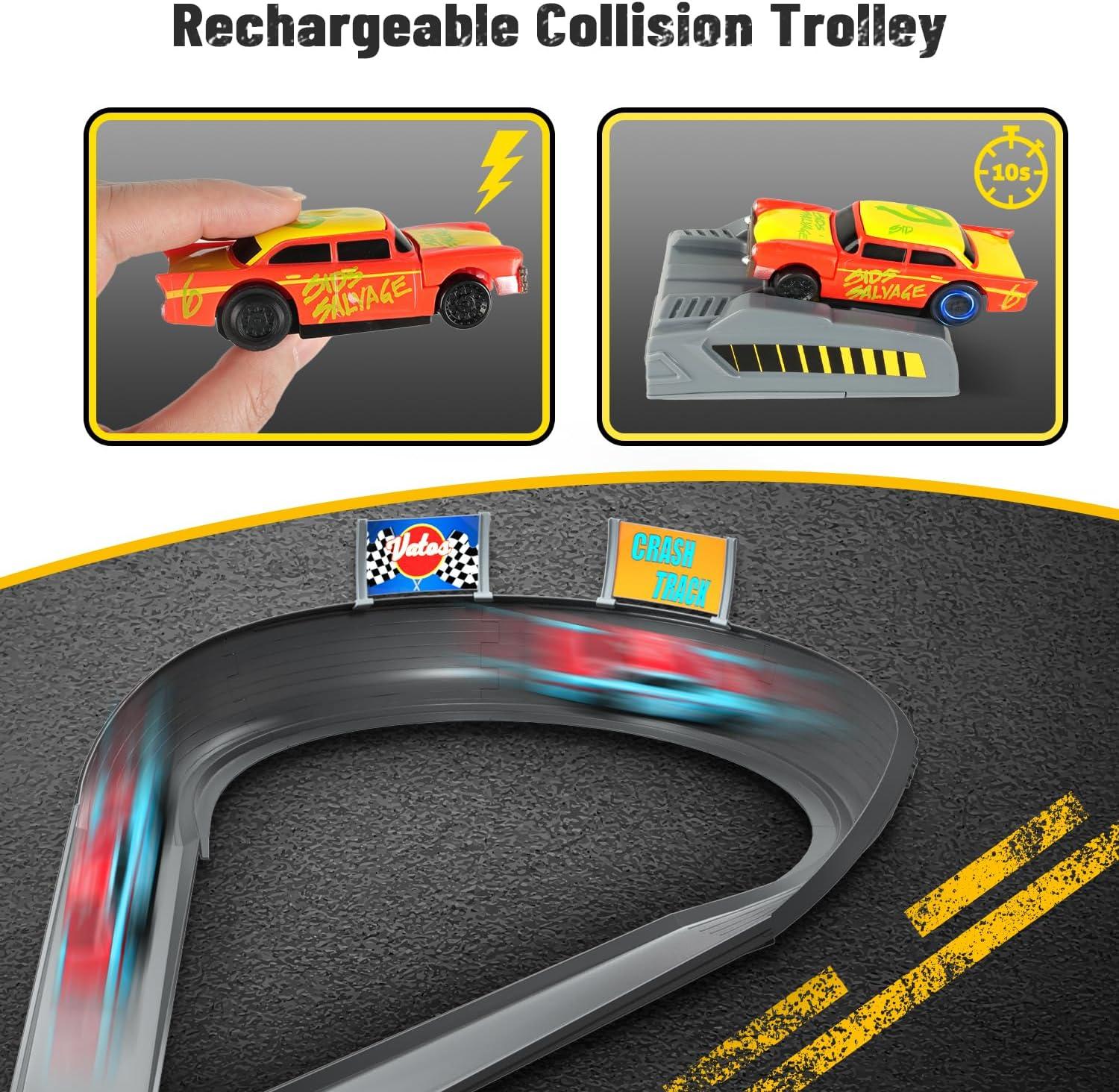 VATOS Slot Car Track Set for Kids, 4 Rechargeable Crash Race Cars, 2 Accumulator Chargers, 2 in 1 DIY Slot Car Race Cars Toy for Boys Girls 3 4 5 6 7 8 9 10 Years Old