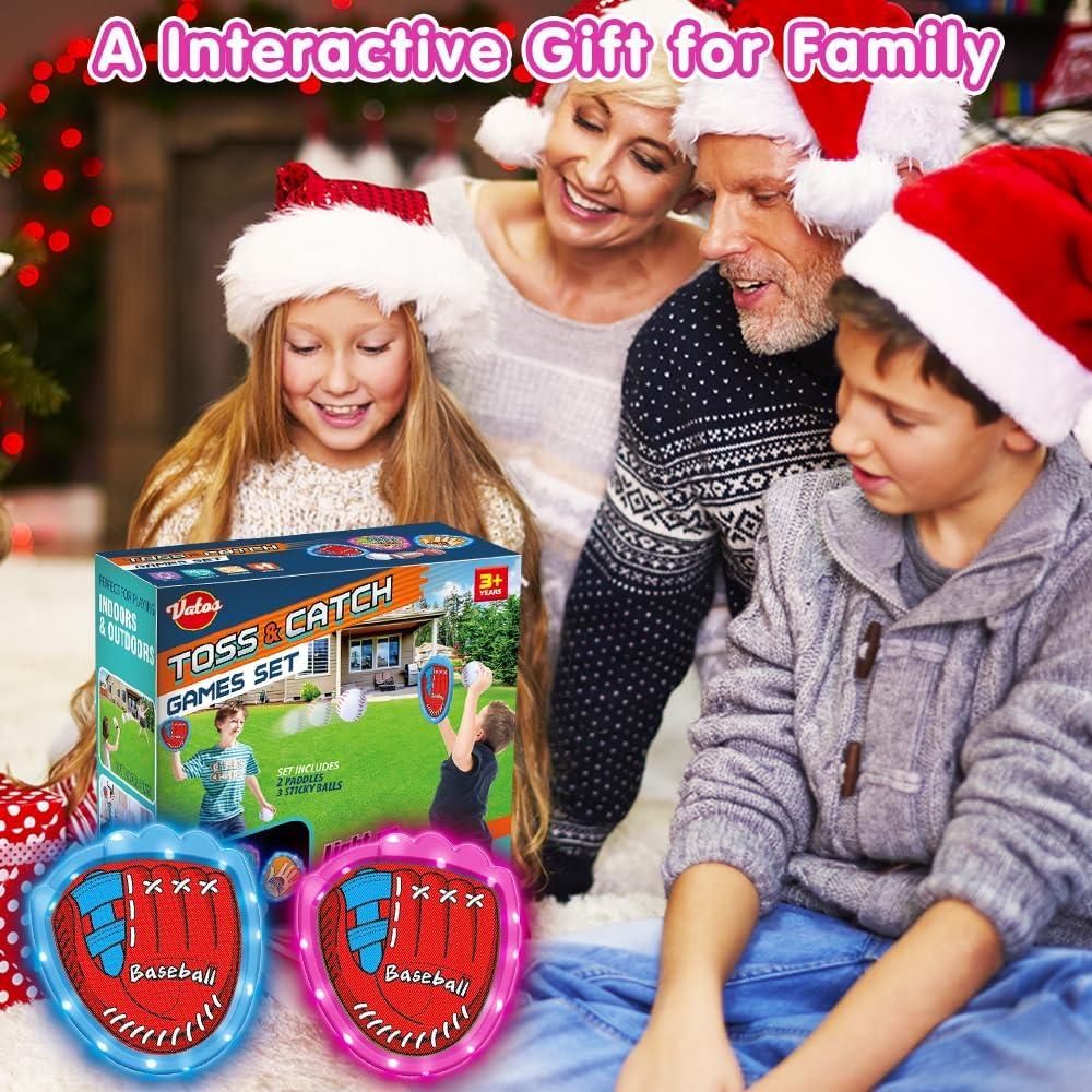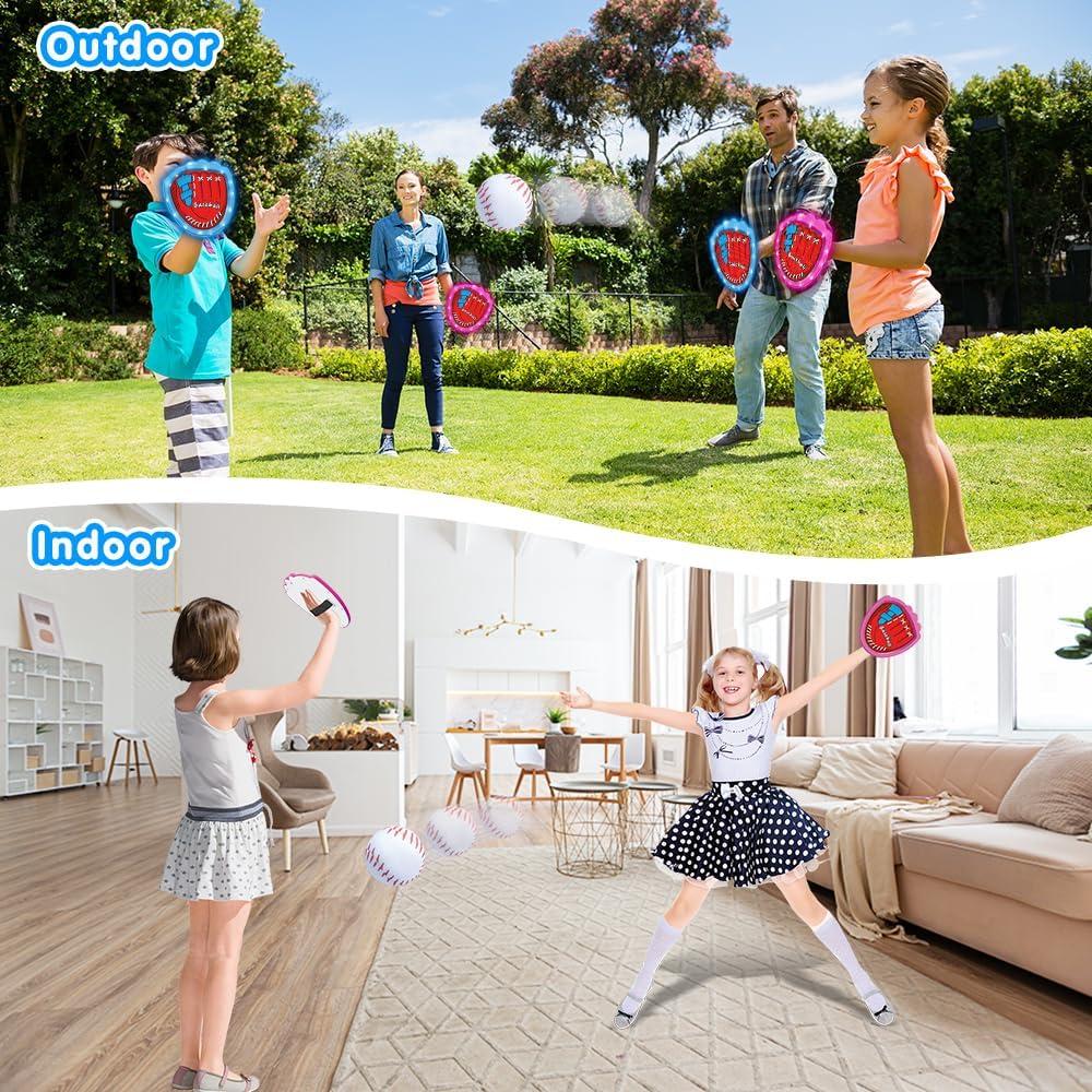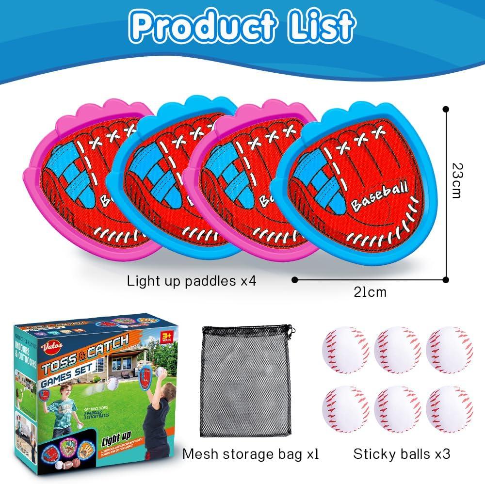 VATOS Toss and Catch Ball Game Set, 6 Sticky Balls & 4 Baseballs Training Glove with LED Light, Outdoor Toys Backyard Garden Lawn Games Sports for Kids Boys Girls 3-12