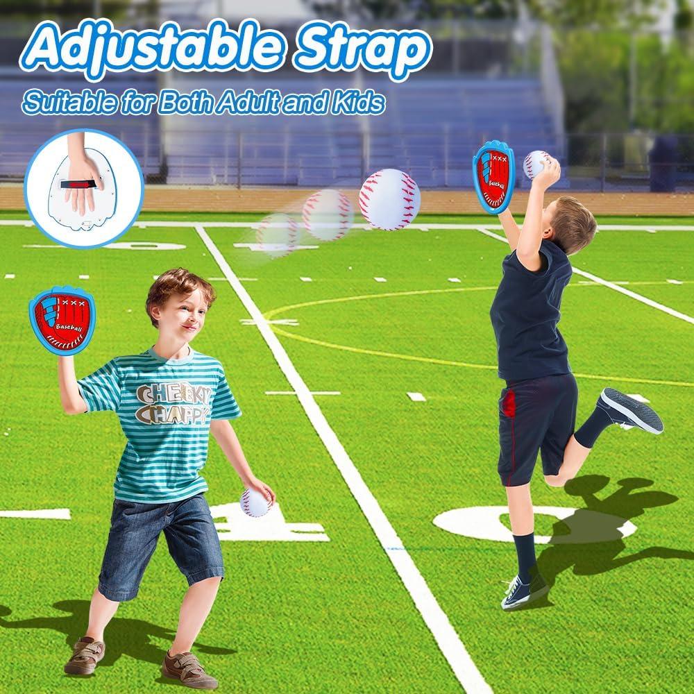 SIMPLE & FUN GAMEPLAY: Both parties simply use the straps on the back of the glove to secure the palms and start an exciting game of baseball! The gameplay is simple but fun; Very suitable for players of all ages, whether kids or adults, can quickly pick up and enjoy the fun of throwing baseball